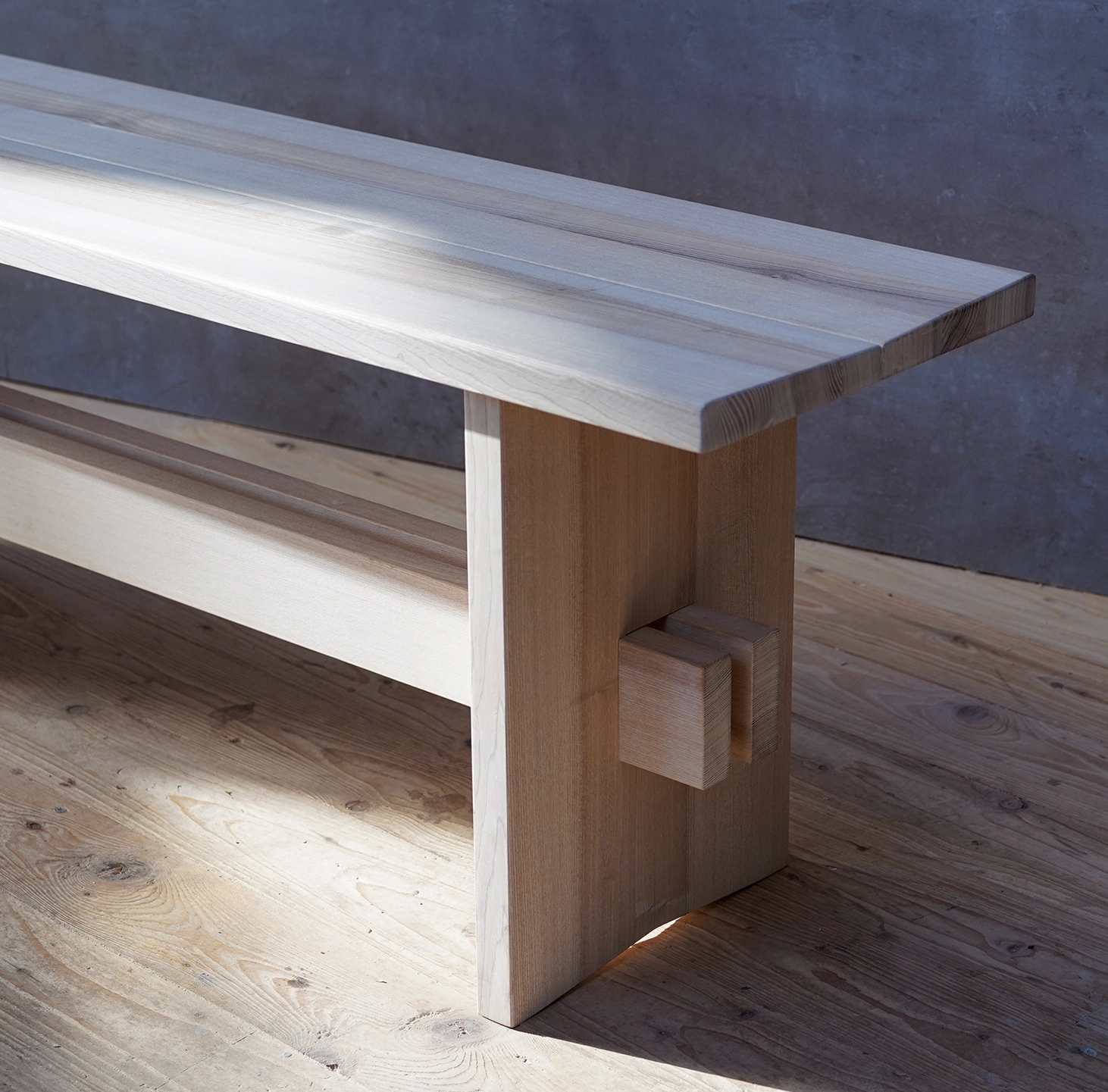 Cleveres Detail: Gradnut, Gratfeder und Keilverstrebungen halten die Bank stabil – ganz ohne Schrauben. So kann das Holz arbeiten, bleibt aber langlebig und robust. Gleichzeitig ist Ava zerlegbar, kompakt zu transportieren und nachhaltig.